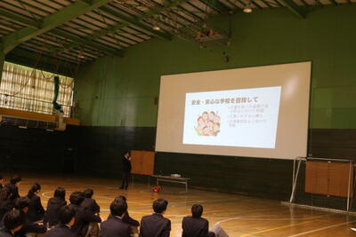 その後に行われた後期始業式の校長講話では安全安心な学校についてのお話しがありました。